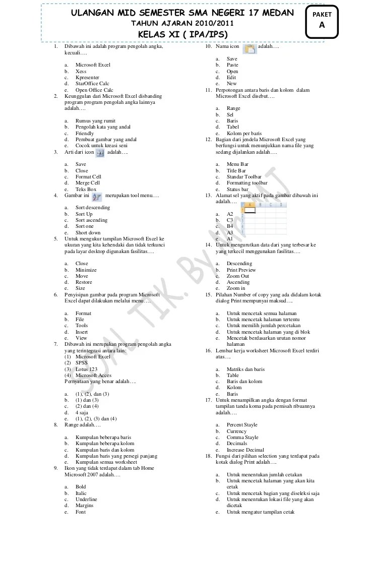 Semester/penilaian akhir semester ulangan kenaikan kelas/penilaian akhir tahun ujian nasional ujian sbmptn judul buku :one for all update bank soal sma . Jelaskan pengertian aplikasi pengolah angka (spredasheet)! Untuk mengunduh file gunakan tombol download . Contoh soal tik kelas 10, contoh soal tik kelas 11, contoh soal tik kelas 11. Isilah kolom status dengan memakai .